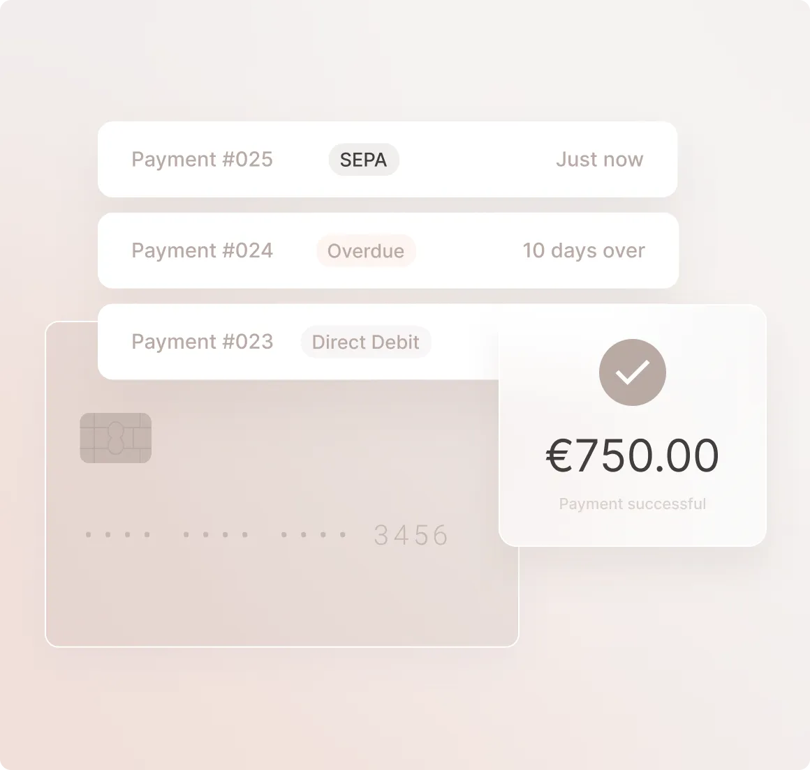 Da die meisten geschäftlichen Zahlungen per Überweisung erfolgen, bietet die Integration von Transaktionen in dein Produkt einen echten Mehrwert. Verwalte ein- und ausgehende Zahlungen sowie Spesen der Mitarbeiter an einem zentralen Ort.