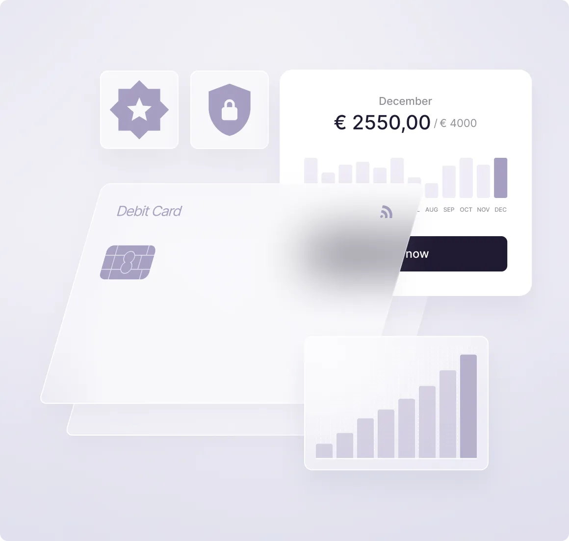 Sie können vollständig konforme Geschäftskonten, gebrandete Zahlungskarten und SEPA-Zahlungen direkt in Ihr Produkt einbetten und so Ihre Plattform zur zentralen Finanzdrehscheibe für Ihre Nutzer machen.